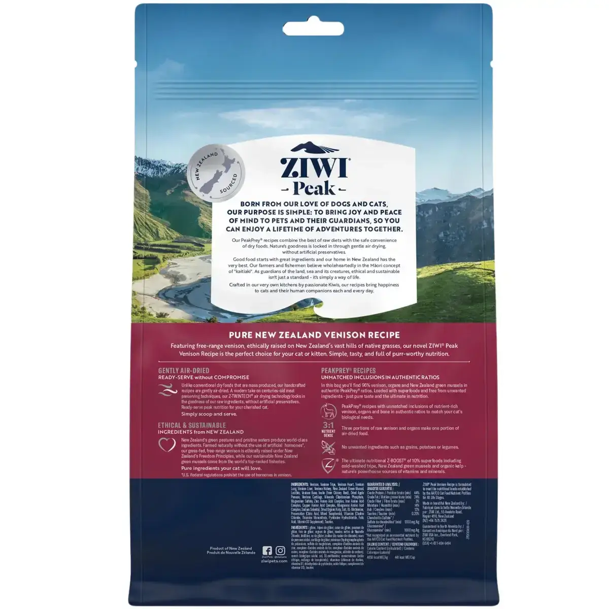 ZIWI Peak Air Dried Venison Cat Food can be fed as a complete and balanced meal or used as a nutrient-dense topper to enhance flavour and nutrition. Because it’s highly concentrated, a little goes a long way — meaning you’ll feed less than traditional dry food while still delivering exceptional nutrition.