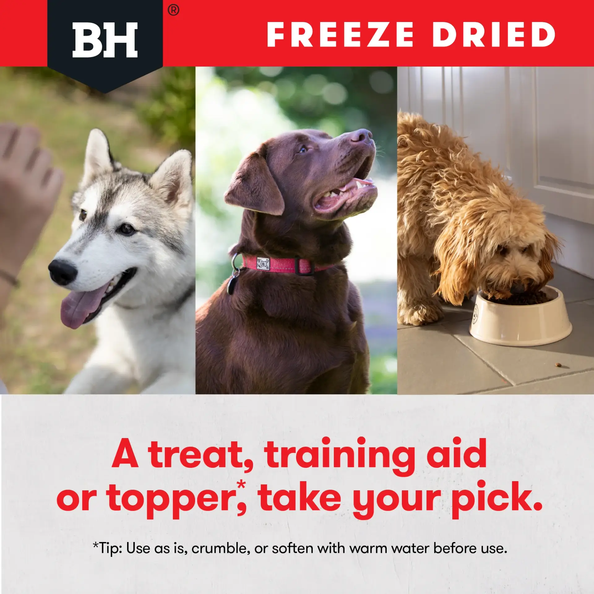 Black Hawk Freeze Dried Beef Liver Dog Treats can be fed whole as a training reward, broken into smaller pieces for frequent reinforcement, or crumbled over meals as a natural topper to enhance taste and appeal. They can also be softened with warm water, making them suitable for dogs of all ages, sizes and chewing preferences.