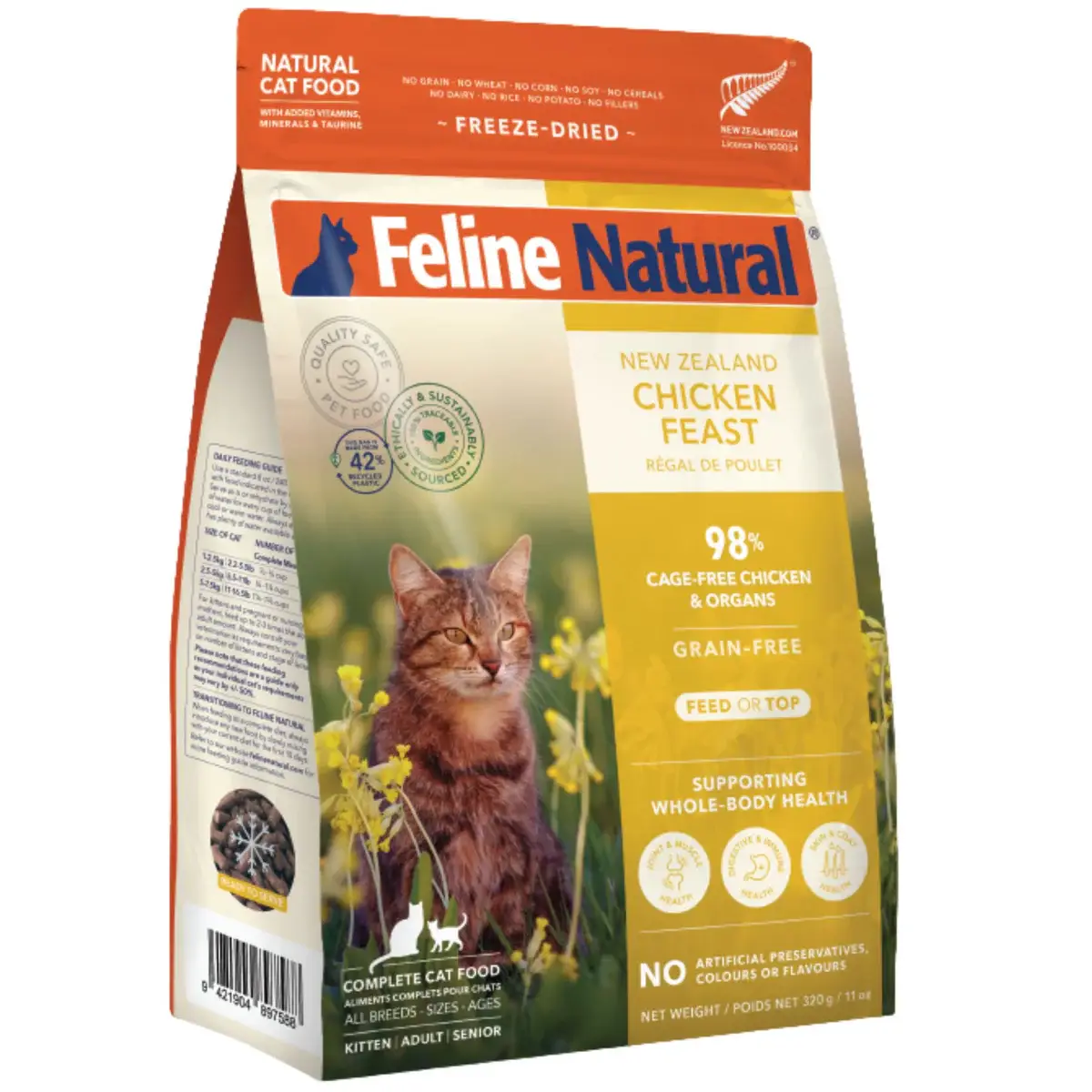 Feline Natural Freeze Dried Chicken Feast is a premium, biologically appropriate cat food made to support whole-body health at every life stage — from curious kittens to wise seniors.