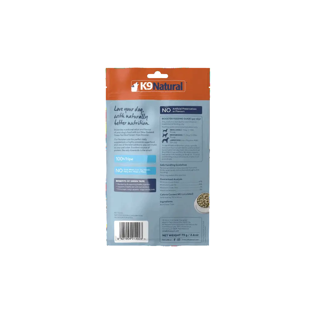 Proudly made in New Zealand from ethically sourced, grass-fed beef, K9 Natural Beef Green Tripe Booster gives your dog a nutritional edge — because great health starts from the inside out. 🐾