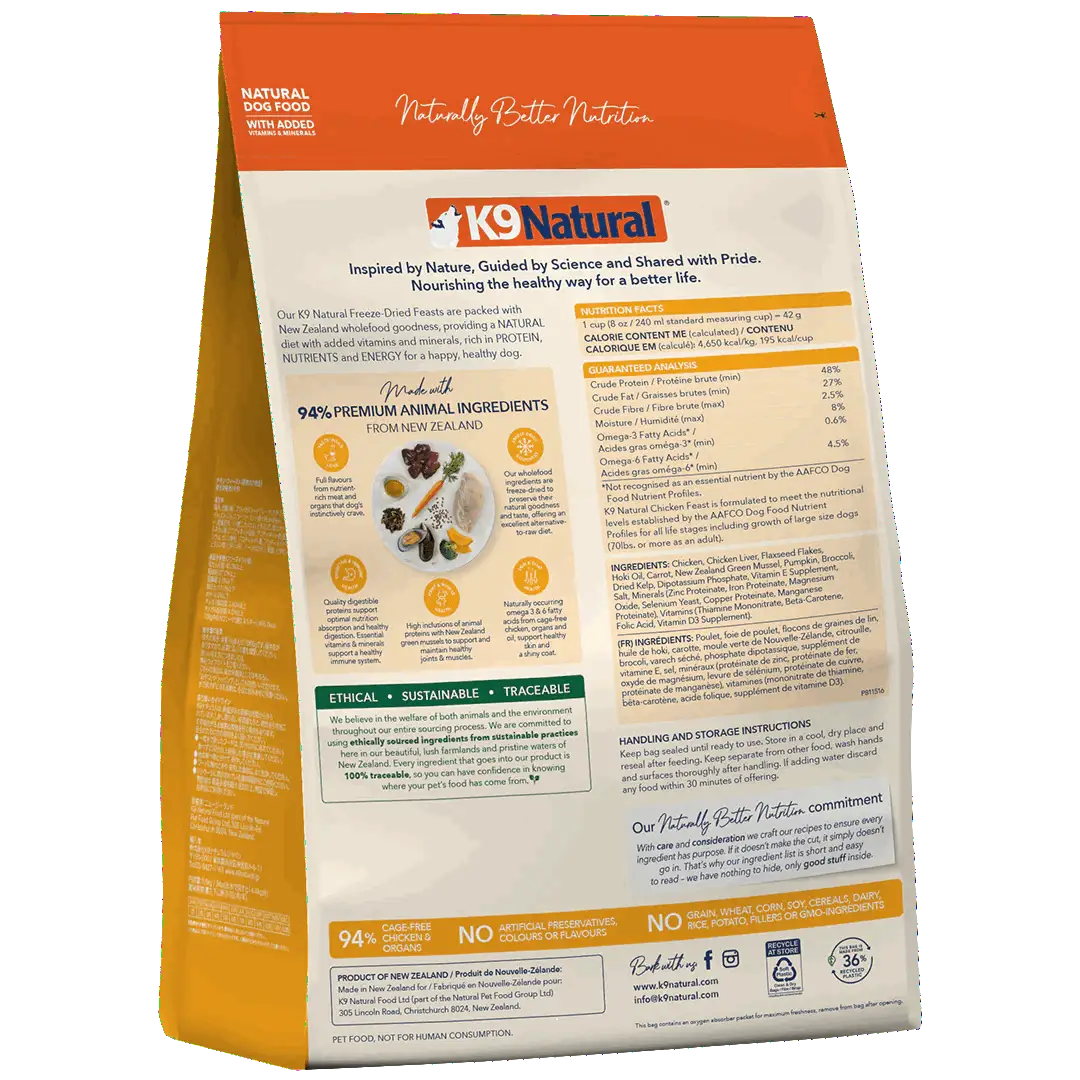 Give your dog a meal that’s as close to nature as it gets with K9 Natural Grain-Free Freeze-Dried New Zealand Chicken Feast Dog Food. Crafted in New Zealand from cage-free chicken and nutrient-rich organs, this premium freeze-dried recipe delivers complete and balanced nutrition that dogs love.