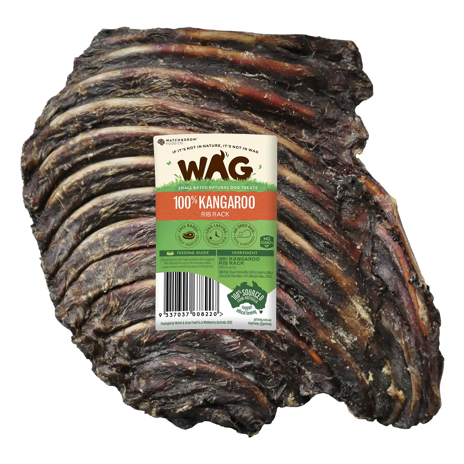 Give your dog a taste of the wild with the WAG Kangaroo Rib Rack — a natural, protein-rich chew that keeps even the most determined chewers happily occupied. Made from 100% Australian kangaroo and nothing else, this hearty rib rack is air-dried to perfection, locking in flavour, nutrition, and irresistible crunch.